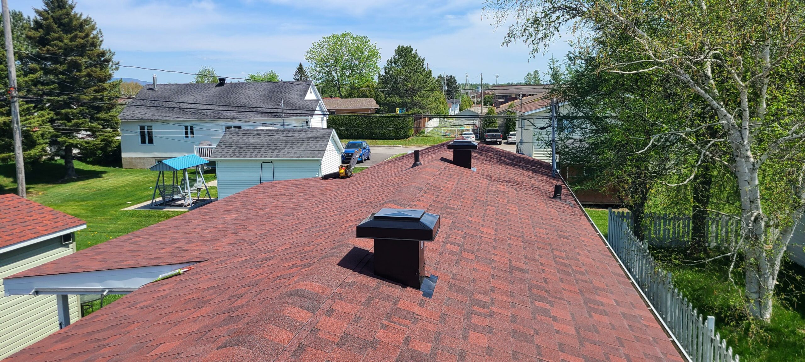 Nous sommes entrepreneurs-couvreurs, spécialisés dans les toitures de bardeaux d’asphalte et de cèdre, sur des toits en pente, en rénovation résidentielle et commerciale. Nos prix comprennent les matériaux, la main-d’oeuvre, l’outillage et l’équipement, de même que la disposition des vieux bardeaux et le nettoyage.